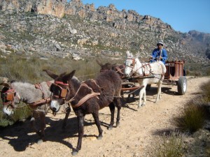 Jackson and his long-eared, shaggy-coated colleagues – steered and sweet-talked by drivers Johannes Ockhuis, David Swartz and Gerrie Theron, and strapped together in traditional harness to quaint old carts – tread the same stony tracks that their equine ancestors did centuries ago, transporting goods and folk to and from the white-housed little mission villages, farms and major routes in the area.