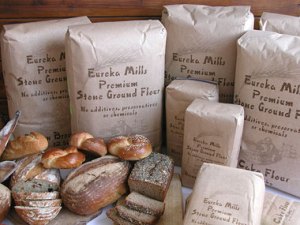 Conventional large-scale milling and stone-grinding can be further differentiated by the fact that during steel roller milling, the grain is crush and the flour released from the endosperm is separated by sifters into different grades according to fineness. The bran and germ are removed in this process. Roller milled whole wheat flour is produced by recombining ground bran with endosperm flour, but the germ is usually left out because it would go rancid. At Eureka Mills, on the other hand, nothing is removed from the product and the company’s flour retains the full complement of wheat germ (about 3%) fibre, natural oils, vitamins and enzymes.