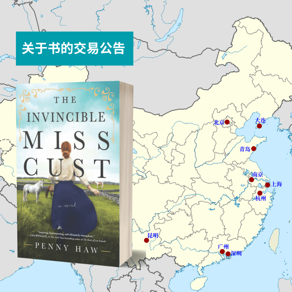 July 21, 2022. The Chinese translation rights for Mainland China of Penny Haw’s historical fiction, THE INVINCIBLE MISS CUST have been purchased by Adagio Culture. The deal, which will see the book translated into Simplified Chinese, was announced on July 8 by Sourcebooks Associate Director of Rights and International Sales, Stephanie Beard. This follows the announcement earlier in the year that Oregon-based Blackstone Publishing, which is one of the largest independent audiobook publishers in the USA, had purchased the audio rights to THE INVINCIBLE MISS CUST.